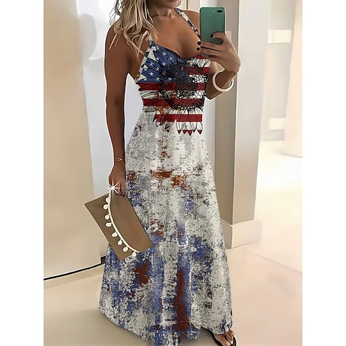 Giorno dell'Indipendenza Americana Per donna Maglietta Grafico Bandiera Americana Vintage Elegante Classico Manica Corta Girocollo Top Regolari Quotidiano Weekend Stampato Blu Nero Bianco Rosso Grigio