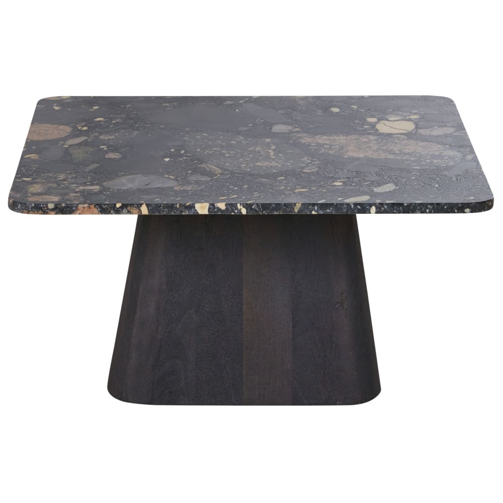 Table basse en pierre et bois de manguier massif noir L80
