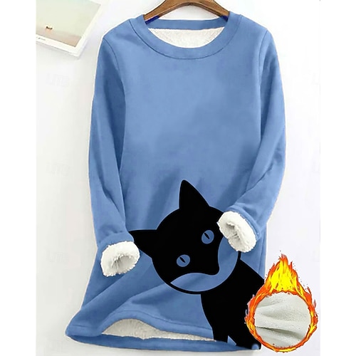 Per donna Taglie Forti Pigiama felpato foderato in pile Felpa Pullover Camicie in pile Gatto Caldo Attivo Maglione Manica Lunga Girocollo Top Regolari Streetwear Casuale Nero Giallo Rosa Rosso Blu