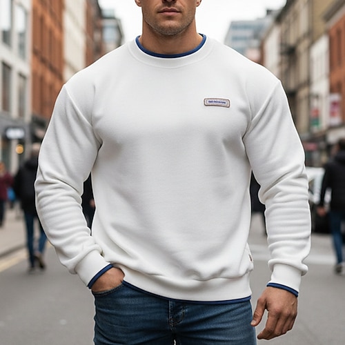 Per uomo Maglia Felpa in pile Blu Nero Bianco Girocollo Semplice Patchwork Sport Outdoor Quotidiano Ferie Poliestere Streetwear Essenziale Casual Autunno Inverno Abbigliamento Felpe con cappuccio