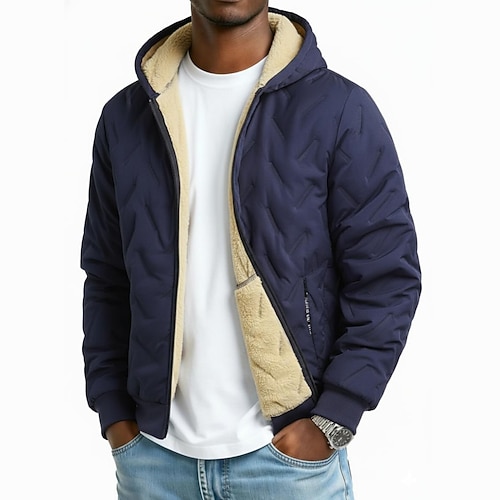 Per uomo Giacca imbottita Giacca in Pile Giacca con Cappuccio Formale Casa Tasca Con cappuccio Autunno Inverno Tinta unica Attivo Neutro Colletto a Camicia Regolare Nero Blu marino Caffè Giacca