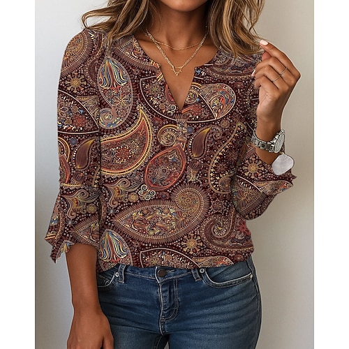 Per donna Blusa Floreale Grafico Vintage Elegante Casual Manica 3/4 Manica a Campana Scollo a V Top Regolari Quotidiano Ferie Uscire Stampato Rosa Rosso Blu Marrone Estate Primavera Autunno