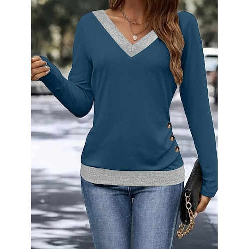 Per donna Blusa Tinta unica Elegante Casual Manica Lunga Scollo a V Top Regolari Quotidiano Patchwork Blu Nero Bianco Blu marino Estate Primavera Autunno