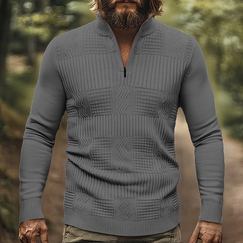 Per uomo Cardigan Maglione Corto Maglione con Zip Maglione a maglia A Coste Maglia Top Regolari Tasca Geometrico Collo alla coreana Moda Classico Vacanza Abbigliamento quotidiano Abbigliamento