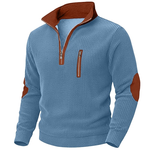 Per uomo Camicia di Velluto a Coste Maglietta Camicia a Maniche Lunghe Camicie da uomo con toppe sui gomiti Manica Lunga Collo Alto Con cerniera Autunno Autunno Inverno Blocco di colori Quotidiano
