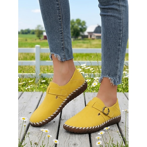 mocassini comodi con fibbia gialla da donna – scarpe morbide e leggere cucite a mano per passeggiate quotidiane, giardinaggio, viaggi e gite rilassate