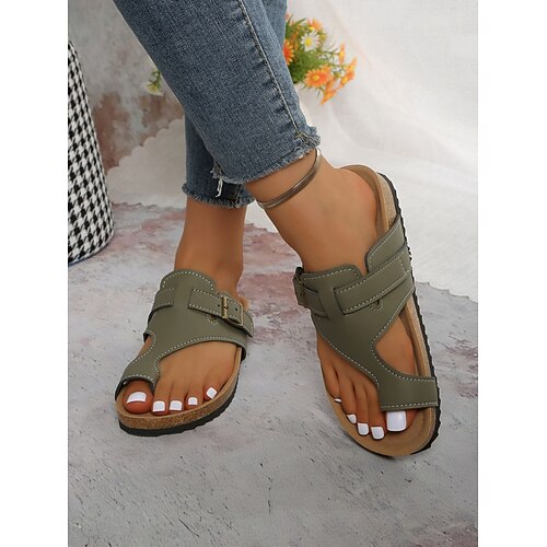 sandali comodi da donna con fibbia regolabile e anello per le dita dei piedi – scarpe casual da passeggio con plantare morbido per l'uso quotidiano, viaggi, shopping e gite estive