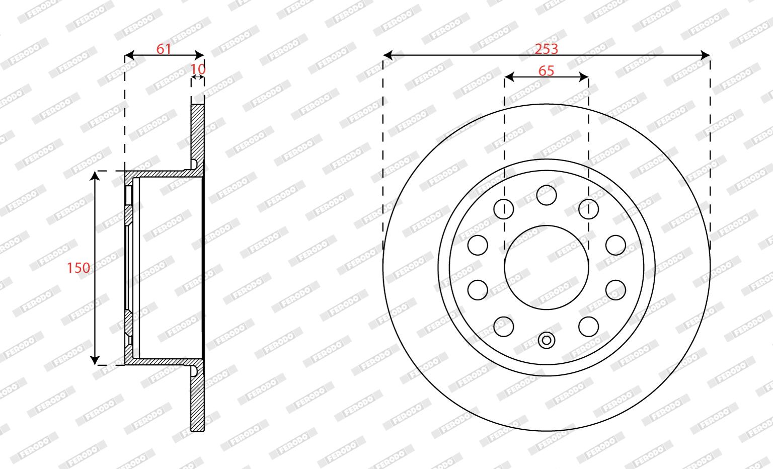 FERODO Bremsscheibe DDF2699C hinten rechts links voll 253mm für SKODA 5Q0615601C
