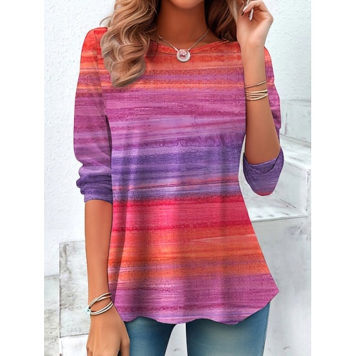 Per donna Maglietta Grafico A righe Vintage Elegante Classico Manica Lunga Girocollo Top Regolari Quotidiano Stampato Giallo Rosa Blu Primavera Autunno Inverno
