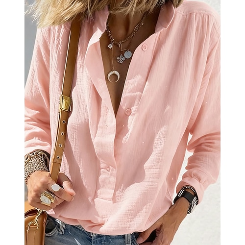 Per donna Blusa Tinta unica Elegante Casual Manica Lunga Girocollo Top Regolari Quotidiano Bottoni Nero Bianco Blu Viola Arancione Estate Primavera Autunno