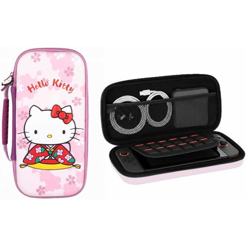 Konix Hello Kitty Housse de protection et transport console Nintendo Switch 2 - Filet rangement accessoires - 8 compartiments jeux - Motif 3D - Rose