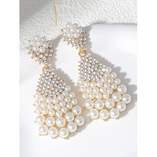 eleganti orecchini pendenti con perle finte e strass – stile vintage, placcati in oro, perfetti per matrimoni e occasioni formali