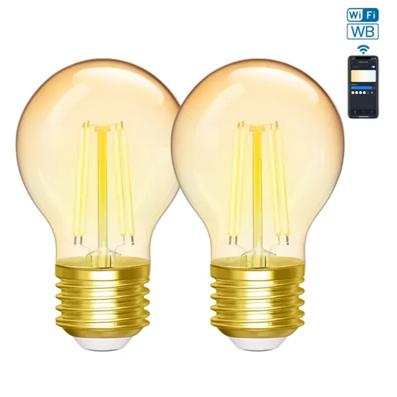 Aigostar WB/Smart Filament-Glühbirne/G45/E27/4.5W/CCT/goldener Lampenschirm/2 Stück in Farbbox