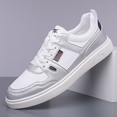 sneakers classiche da uomo in similpelle bianca: design elegante, versatili e alla moda, ideali per occasioni casual e semi-formali