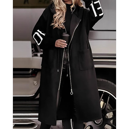 Per donna Cappotto Invernale Cappotto Caldo Confortevole Patchwork Cerniera Tasca Moda Casual Lettera Vacanza Streetwear Casuale Abbigliamento quotidiano Lungo Con Cappuccio Vestibilità regolare