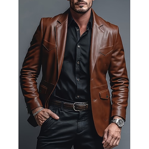 Per uomo Giacca in Ecopelle Blazer Casuale Quotidiano Lavoro Classico Primavera Autunno Pelle PU Tinta unica Tasca Di tendenza Monopetto due bottoni Giacca Caffè