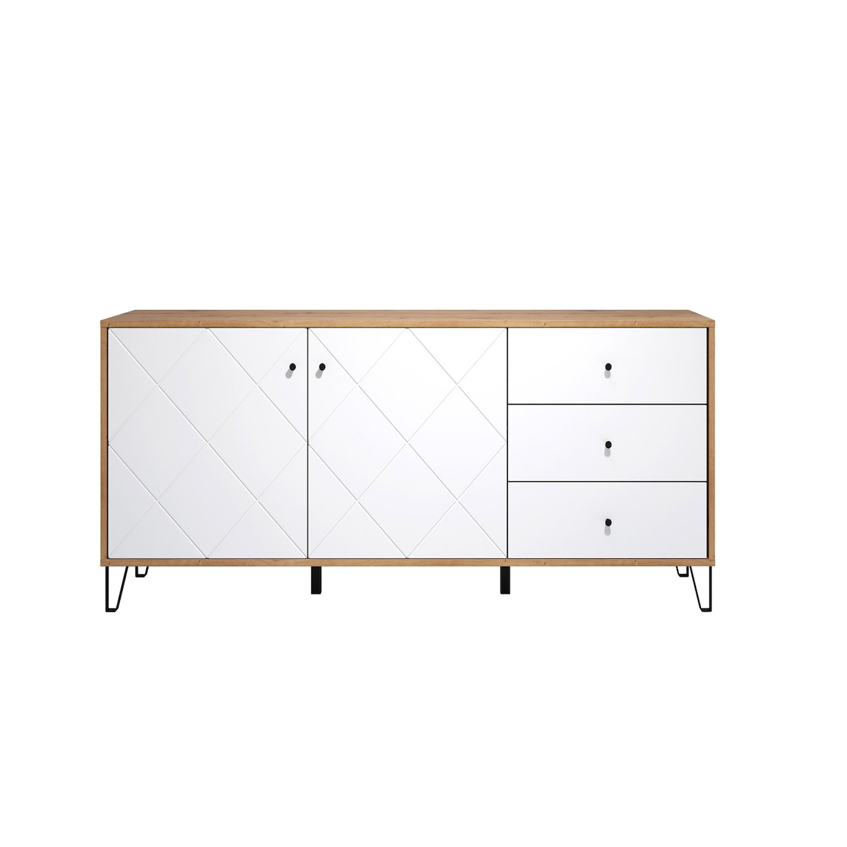 Touch Sideboard 2 Türen, 3 Schubladen Eiche Dekor, weiß matt.
