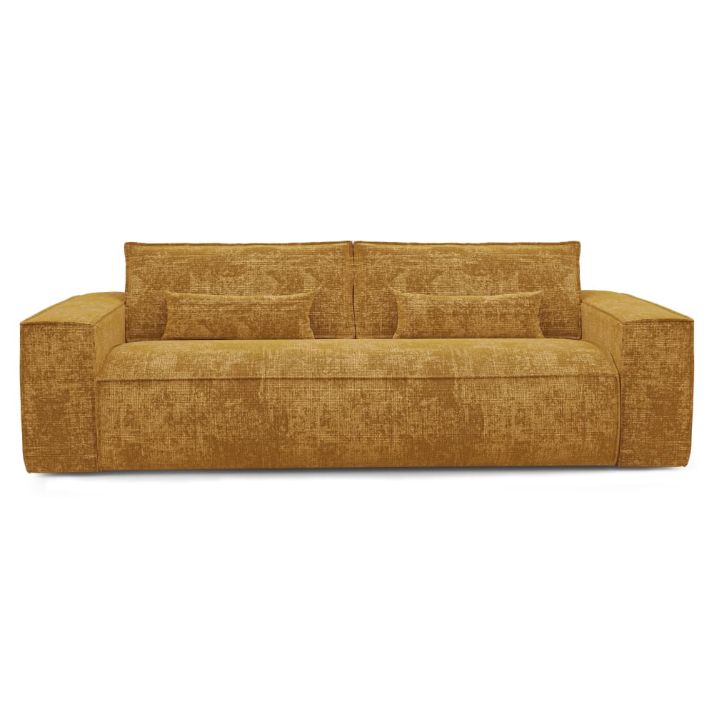 Divano letto apertura rapida 4 posti velluto goffrato senape