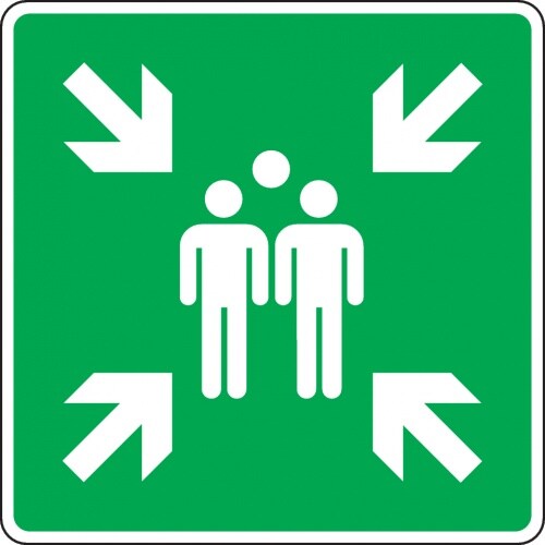 Schild I Rettungszeichen Sammelstelle, Aluminium RA0, reflektierend, 400x400mm, ASR A1.3, DIN EN ISO 7010 E007