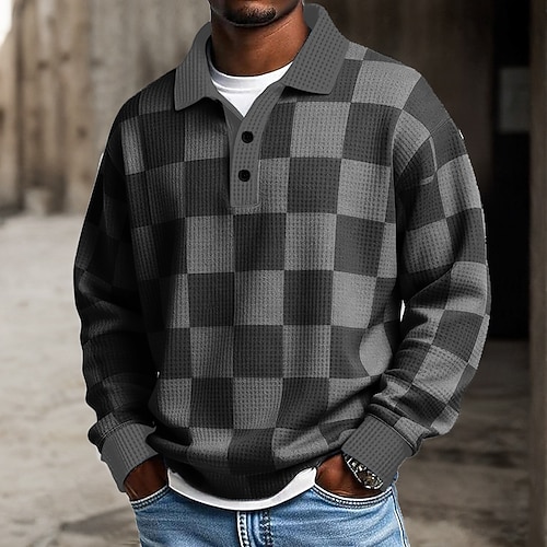Per uomo Grafico Geometrico Blocco di colori Maglia Henley a nido d'ape Stile casual Stile classico Manica Lunga Moda Designer Essenziale Quotidiano All'aperto Primavera Autunno Grigio Henley