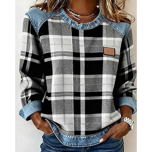 Per donna Blusa Plaid Blocco di colori Elegante Vintage Manica Lunga Girocollo Top Regolari Quotidiano Ferie Uscire Patchwork Nero Rosa Rosso Arancione Cachi Primavera Autunno Inverno