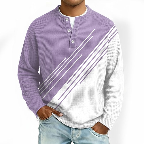 Per uomo Geometrico Blocco di colori Maglia Henley a nido d'ape Stile casual Stile classico Manica Lunga Moda Designer Essenziale Casuale Quotidiano All'aperto Primavera Autunno Inverno Grigio Rosa