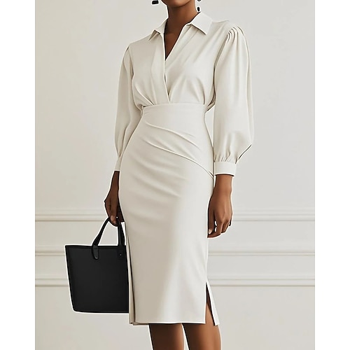 Per donna Abito Lungo Maxi Abito Abito nero Tubino Elegante Moda Moderno Quotidiano Ufficio Ferie Vestibilità regolare Semplice Manica Lunga Scollo a V Nero Rosa Grigio chiaro Beige Primavera Autunno