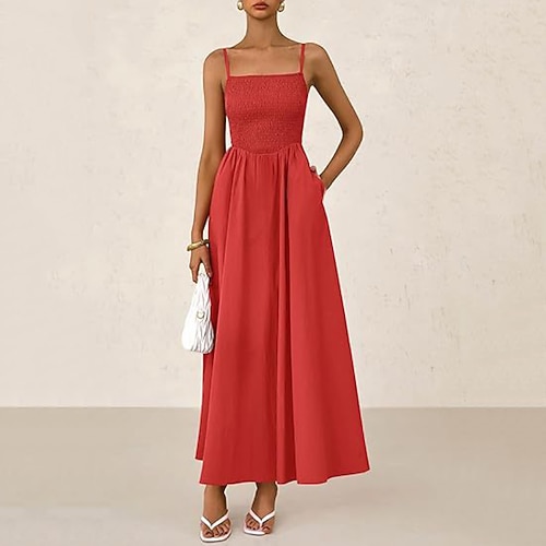 Per donna Abito Midi Abito Estivo Abito Sottoveste Moda Moderno All'aperto Vacanza Uscire Vestibilità regolare Semplice Senza Maniche Spalline Blu Nero Bianco Rosa Estate Primavera