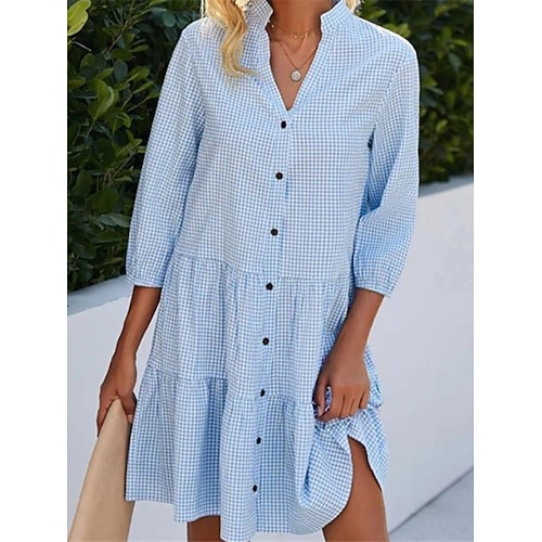 Per donna Mini Abito Abito a trapezio Casual Quotidiano Vestibilità comoda Plaid Manica 3/4 Scollo a V Blu Rosa Estate Primavera