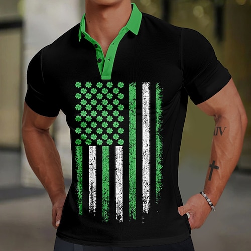 Per uomo San Patrizio Trifoglio Bandiera Americana Maglia Henley Maglietta Camicia a Maniche Lunghe Manica Lunga Stampa 3D Moda Designer Essenziale Vacanza Giorno di San Patrizio Streetwear Primavera