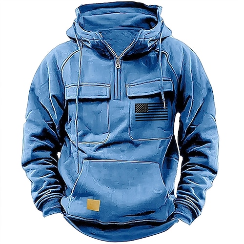 Per uomo Felpa con cappuccio Felpa con cappuccio e zip corta Nero Rosa Vino Blu Verde Con Cappuccio Bandiera Nazionale Coulisse Tasca Sport Outdoor Quotidiano Ferie Streetwear Essenziale Casual