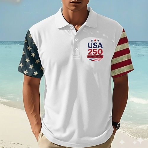 Giorno dell'Indipendenza Americana Per uomo Bandiera Americana Polo Manica Corta Magliette polo Bavero Casual Athleisure Abito da festa Stampa 3D Bottoni Estate Blu Nero Bianco
