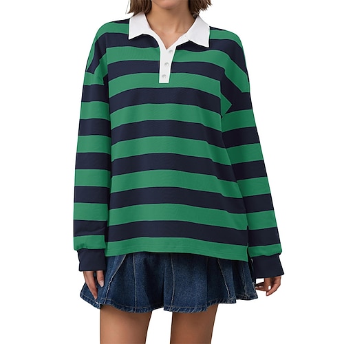 Per donna Maglietta A righe Moda Elegante Classico Manica Lunga Colletto a Camicia Top Regolari Quotidiano Uscire Weekend Bottoni Blu Bianco e nero Bianco Giallo Rosa Primavera Autunno