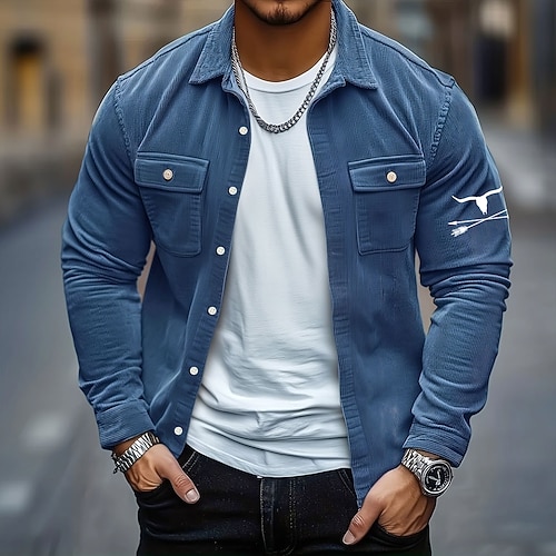 Per uomo Cowboy Camicia di velluto a coste Giacca da camicia Sovracamicia Manica lunga Vintage Tribale Esterno Da giorno Autunno inverno Collo ripiegabile Camicie con colletto Bottoni Stampa 3D 2