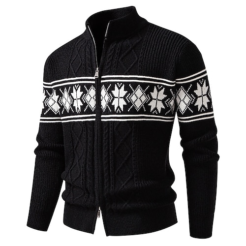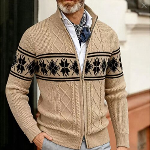 Per uomo Felpa Cardigan Maglione Fair Isle Maglione con Zip A Coste Treccia Maglia Top Regolari Jacquard Lavorato a maglia Semplice Collo alla coreana Vacanza Moda Casuale Abbigliamento quotidiano