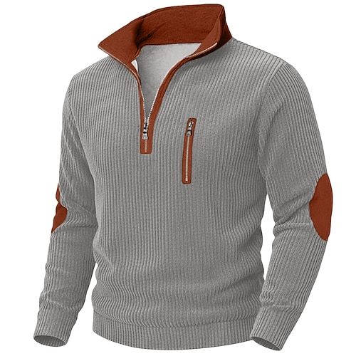 Per uomo Camicia di Velluto a Coste Maglietta Camicia a Maniche Lunghe Camicie da uomo con toppe sui gomiti Manica Lunga Collo Alto Con cerniera Autunno Autunno Inverno Blocco di colori Quotidiano