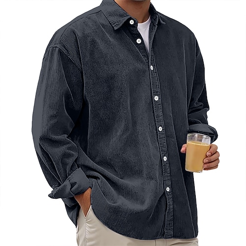 Per uomo Camicia Camicia casual Camicia di Velluto a Coste Camicia con Bottoni Nero Bianco Blu marino Blu Viola Manica Lunga Collo ripiegato All'aperto Streetwear Abbigliamento Vintage Casual