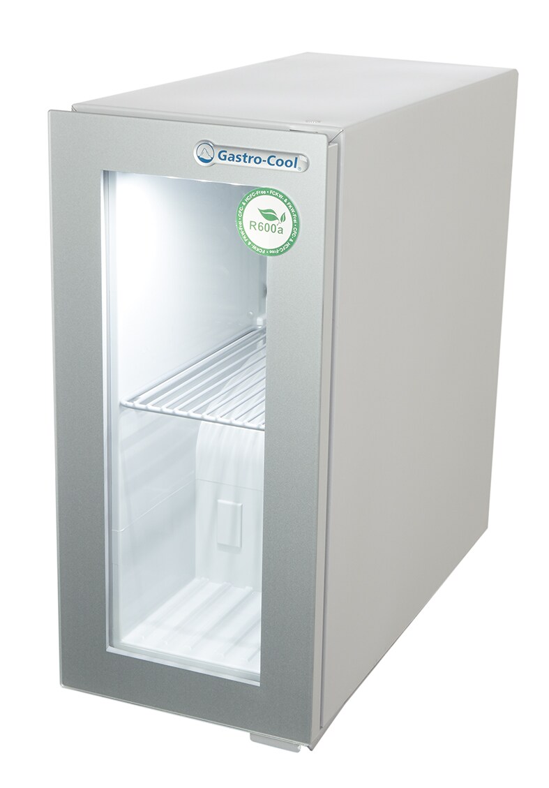 Gastro-Cool - Extra kleiner und schmaler Getränkekühlschrank mit Glastür - silber GCGD8