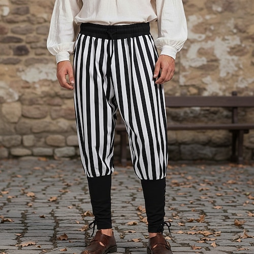 Retrò Vintage Medievale 17° secolo Pantaloni da pirata Pirata Cavaliere Vichingo Crociato Ranger Coulisse A righe Costume Per uomo Costumi da pirata Halloween Carnevale LARP Fiera Rinascimentale
