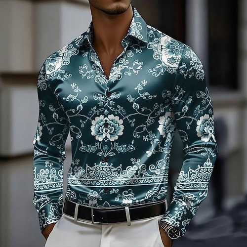 Per uomo Stampa Floreale Etnico Fiori Camicia Camicia in raso Camicia elegante Manica Lunga Vintage Retrò Vacanza Abbigliamento Quotidiano Estate Primavera Autunno Collo ripiegato Stampa 3D Camicie