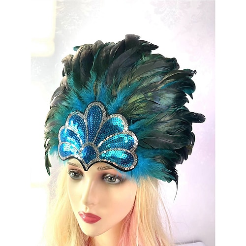 Carnevale 2026 Accessori per Samba di Rio Copricapo di piume marrone arancione per donne - Copricapo da showgirl con paillettes dorate - Accessorio per Mardi Gras Carnevale in Brasile