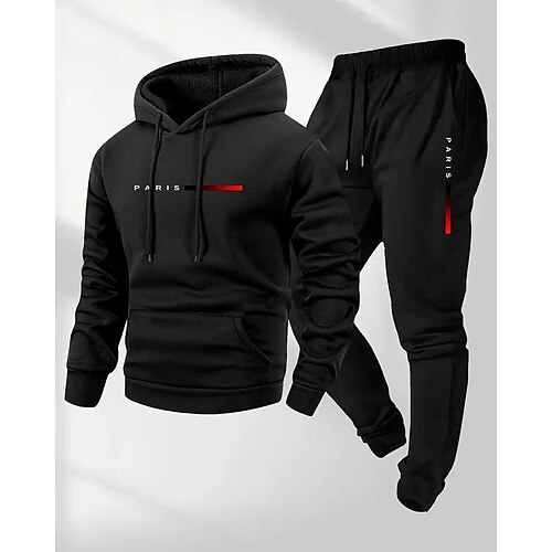 Per uomo Tuta da 2 pezzi Pantaloni sportivi da tuta Felpa con cappuccio con tasca Tinta unita Completo Abbigliamento Autunno / Inverno Grigio scuro blu navy Palestra Escursionismo Allenamento Leggero