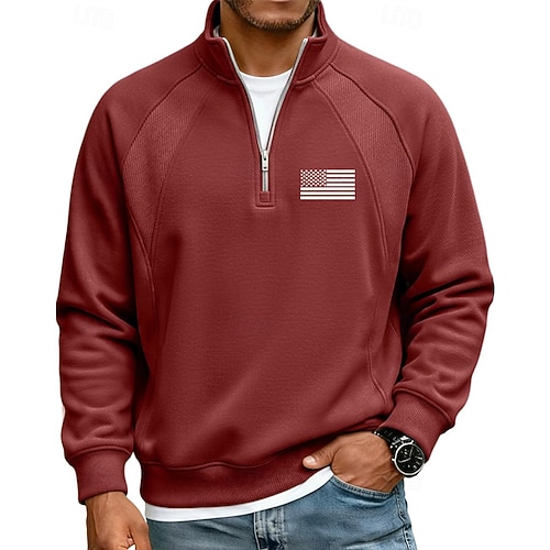 Per uomo Polo Polo con zip a un quarto Vacanza Streetwear Zip a un quarto Manica Lunga Moda Essenziale Bandiera degli Stati Uniti Patchwork Stampa Autunno Inverno Vestibilità su misura Blu Aalbicocca