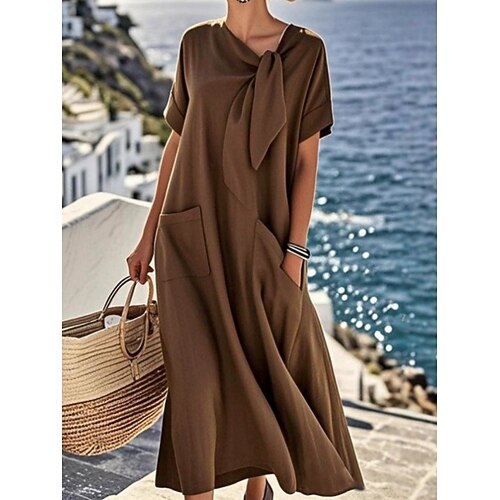 Per donna Abito maxi Abito a trapezio Abito Estivo Casual Quotidiano Vestibilità comoda Semplice Manica Corta Scollo a V Blu Marrone chiaro Marrone Verde militare Estate