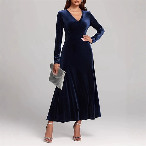 Per donna Abito Midi Abito in Velluto Abito da Cocktail Elegante Moda Moderno Quotidiano All'aperto Festa serale Vestibilità regolare Semplice Manica Lunga Scollo a V Blu Nero Vino Viola Primavera
