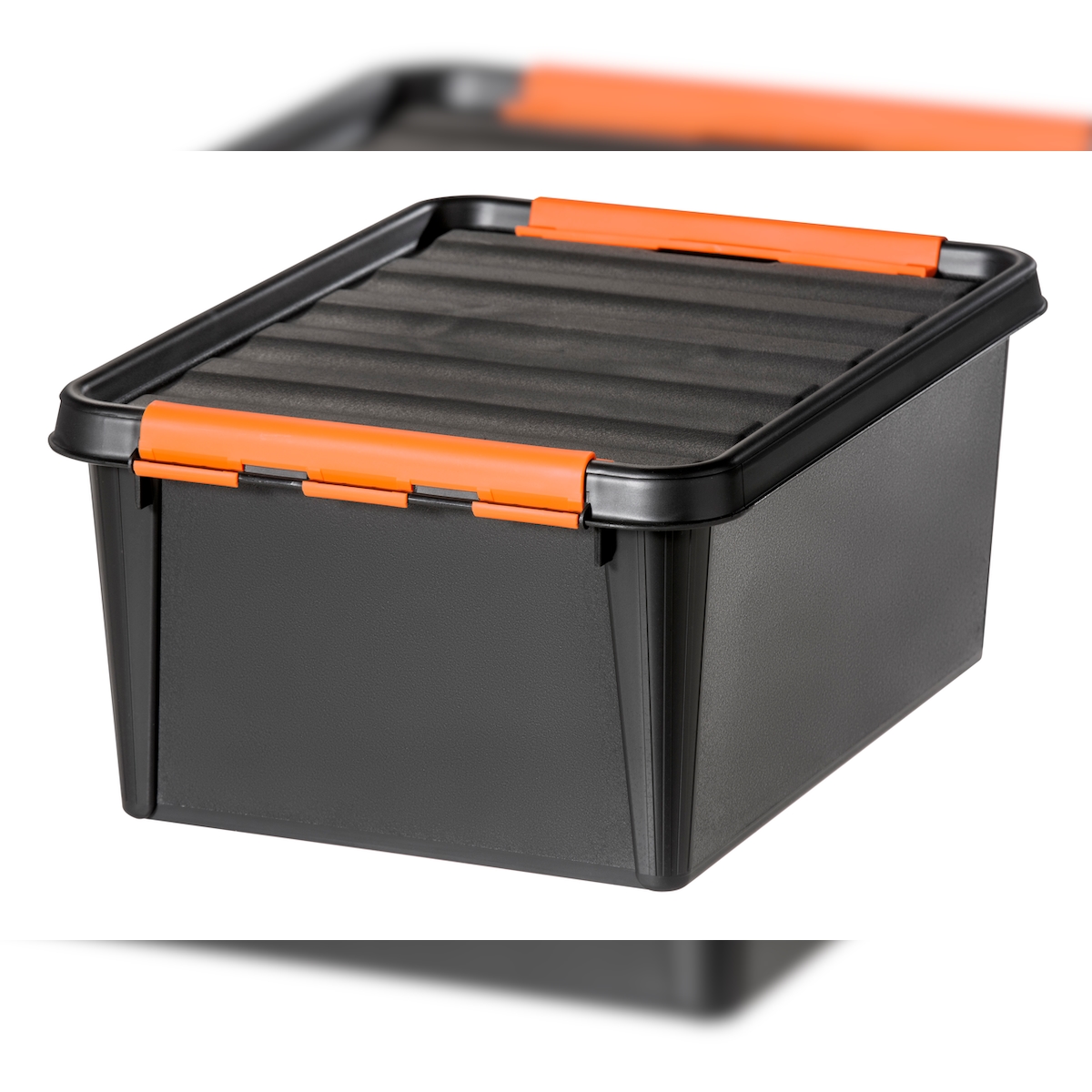 PROREGAL SparSet 10x Eurobox NextGen Economy mit Auflagedeckel & 4x Verschlüsse Schwarz, Griffe zu, HxBxT 22x30x40cm, 20L, Eurobehälter, Box
