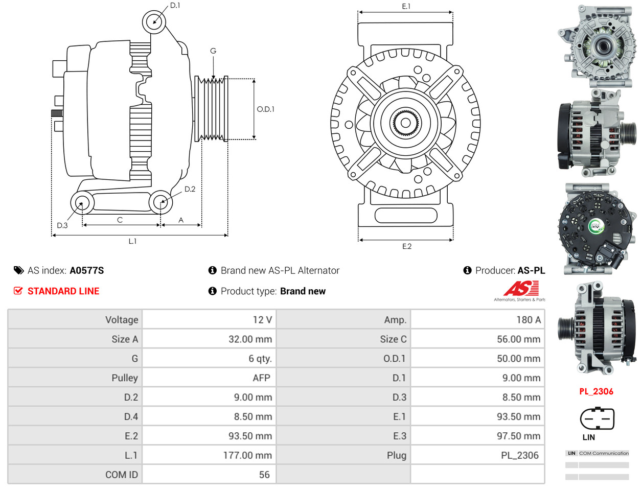 AS-PL Generator A0577S 12V 180A für MERCEDES-BENZ 0131549002 A013154900280 A0131549002