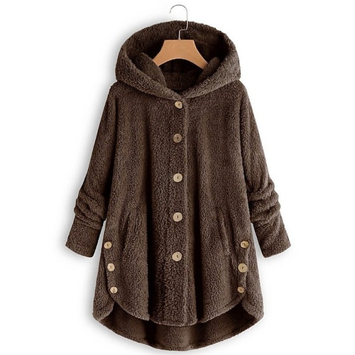Per donna Giacca Sherpa Giacca con Cappuccio Confortevole Traspirante Tasca Bottoni Moda Casual Semplice Vacanza Streetwear Casuale Abbigliamento quotidiano Monopetto Regolare Con Cappuccio