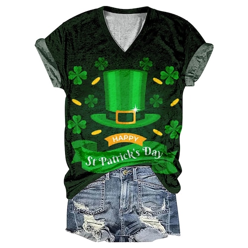 Per donna maglietta Trifoglio Festa di San Patrizio Informale Verde primavera Verde chiaro Verde militare Stampa Manica corta Di tendenza A V Standard Primavera estate