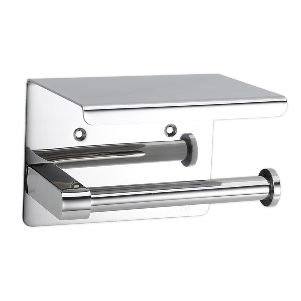 Intirilife Toilettenpapierhalter mit Ablage in SILBER - 16 x 11 x 10 cm - Edelstahl mit Ablage zum Bohren WC Papier Rollenhalter